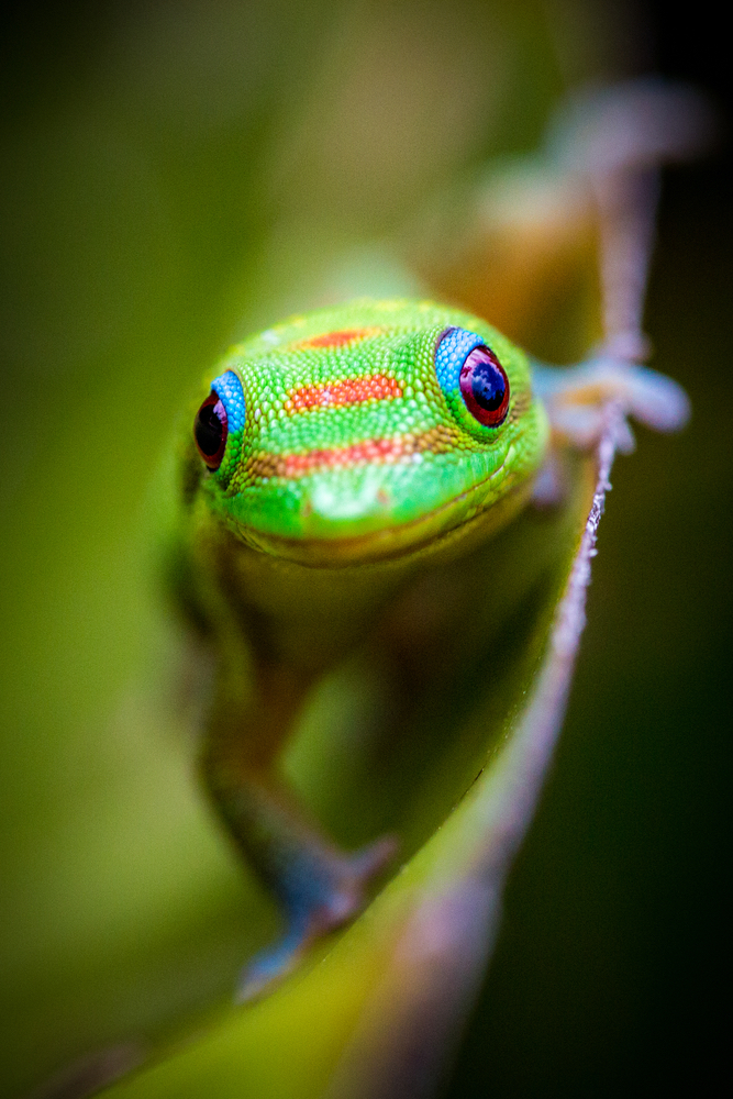 Now, normally geckos are a bit skittish, any sudden movement and they are out-of-there in a hurry.  Not this one. I would shoo, he would scurry to the edge of, and then down the side of the coffee table. Then peep just his head up sideways, with one eye peering for the all clear, then start back up and over to the tea tray. He never took the same route twice. It was rather amusing and quite funny to see a gecko acting like any domestic animal, who when shooed away from a food source, would keep checking to be sure if you really meant ‘no’.  After about four times of this ‘shooing’ and ‘peering’ up over the edge of the table, he finally decided to move on.